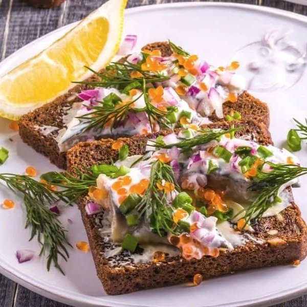 Ingelegde haring is een absolute klassieker, en is een beetje vergelijkbaar met de Hollandse maatjes. Je vindt varianten met kerrie, mosterd of ui. Geserveerd met roggebrood en boter vormt het een stevige, maar smakelijke lunch.