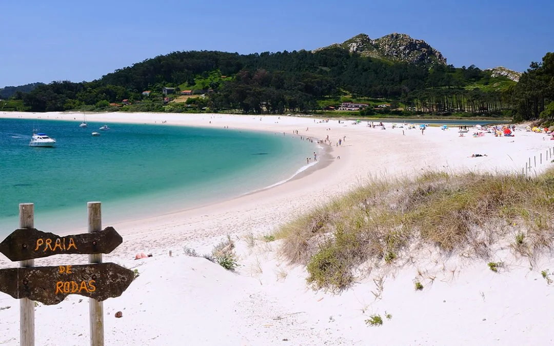 Op de Cíes-eilanden ligt Playa de Rodas, door The Guardian ooit uitgeroepen tot mooiste strand ter wereld. Het is een brede strook wit zand die een turquoise lagune met de oceaan verbindt – een droomlocatie.