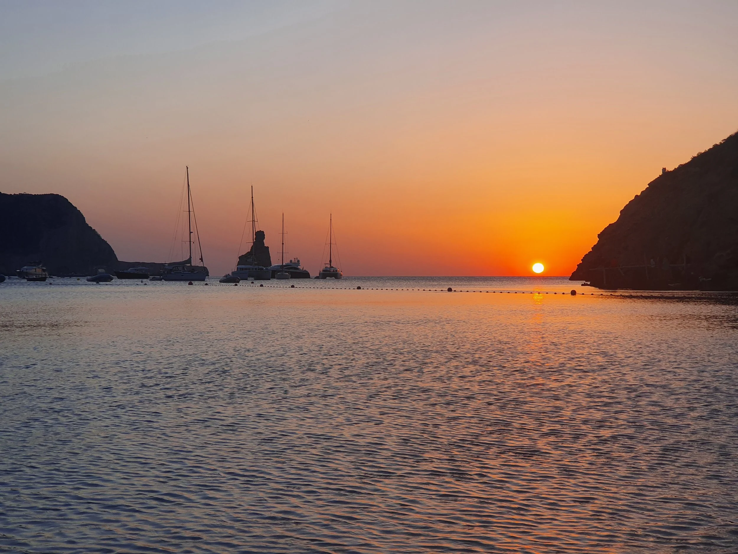 Wat Cala Comte bijzonder maakt, is de sfeer. Velen verzamelen zich hier voor een “sunset ritual”, compleet met muziek en dans. Terwijl de zon in de zee zakte, voelde het meer als een festival dan een gewoon strand.