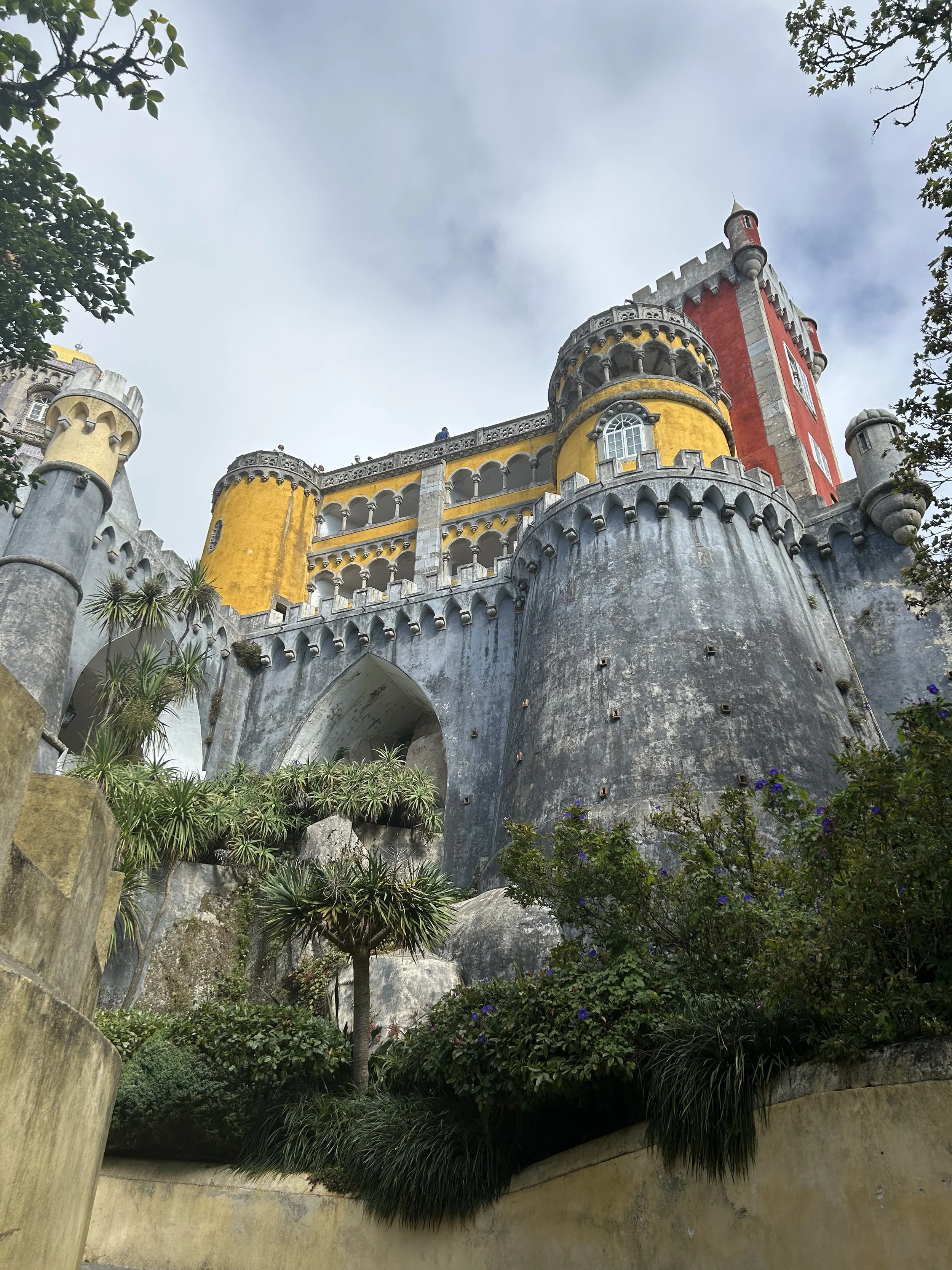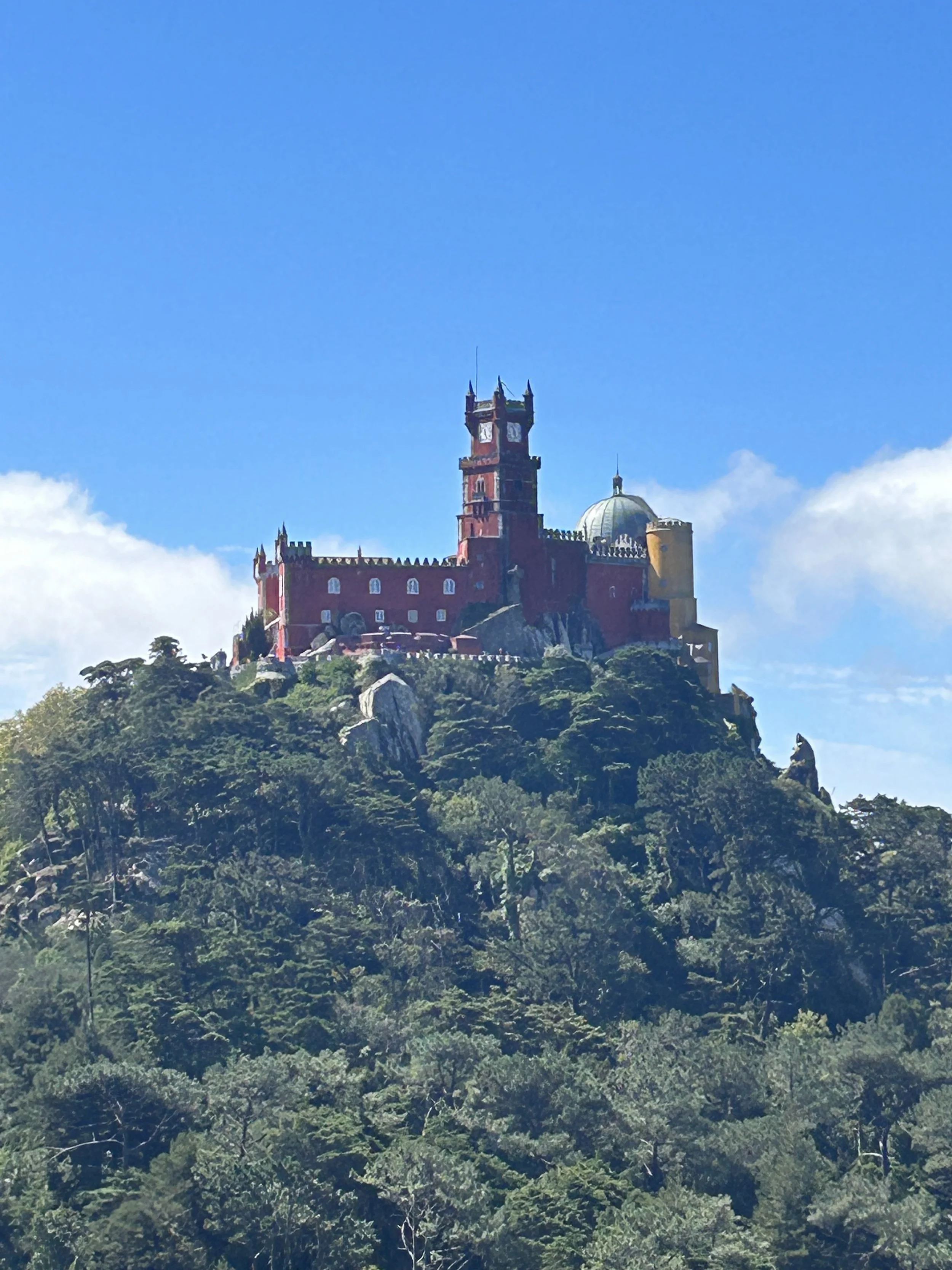 Toen ik de eerste blik op Pena Palace ving, had ik het gevoel dat ik een sprookjesboek binnenliep. De felle kleuren - geel, rood en blauw - contrasteren prachtig met de groene bossen eromheen. Zelfs al wist ik dat dit hét icoon van Sintra was, toch was ik overdonderd.