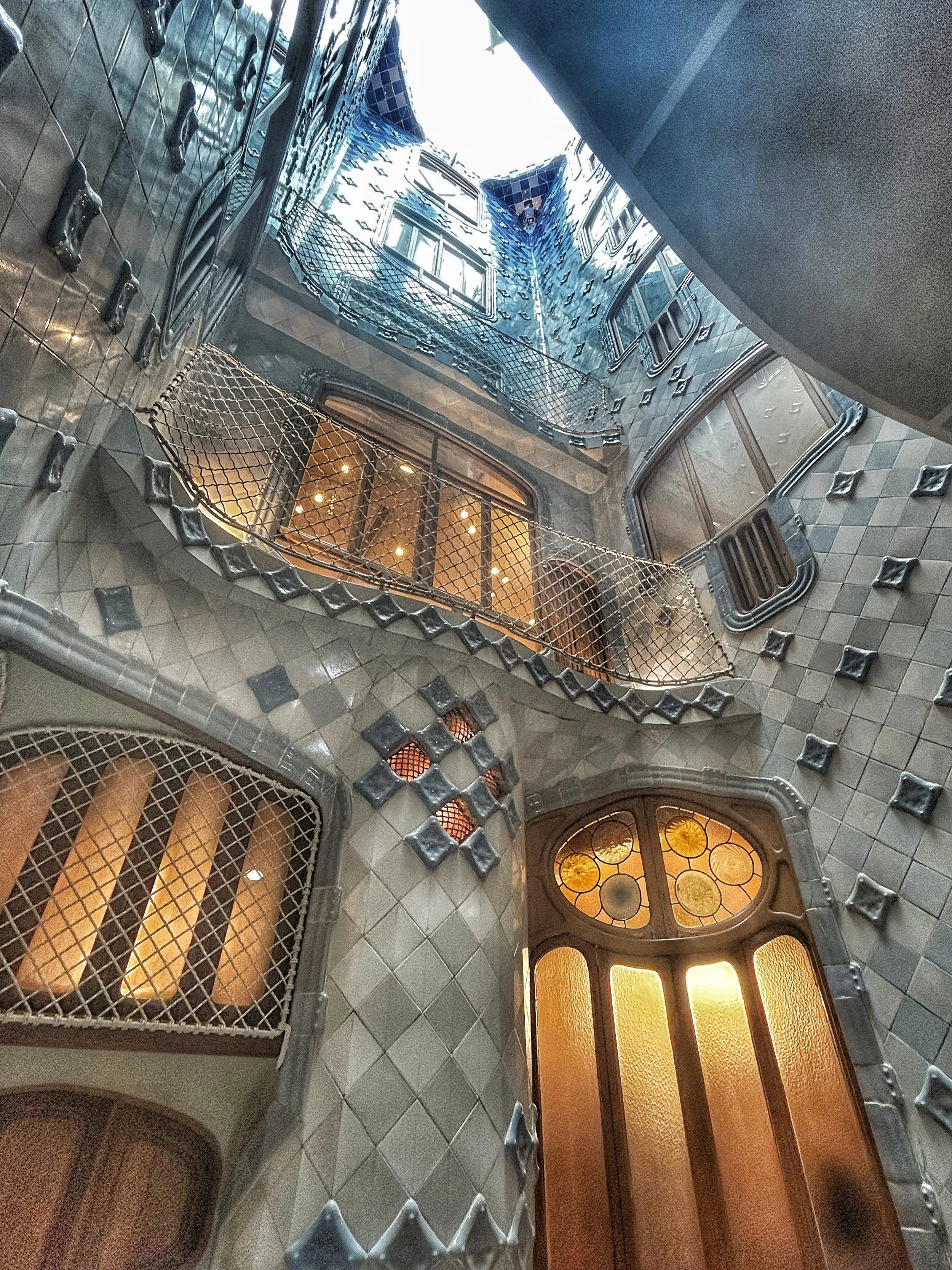 De Patio de Luces – een lichtschacht met blauw-witte tegels die van donker naar licht overgaan